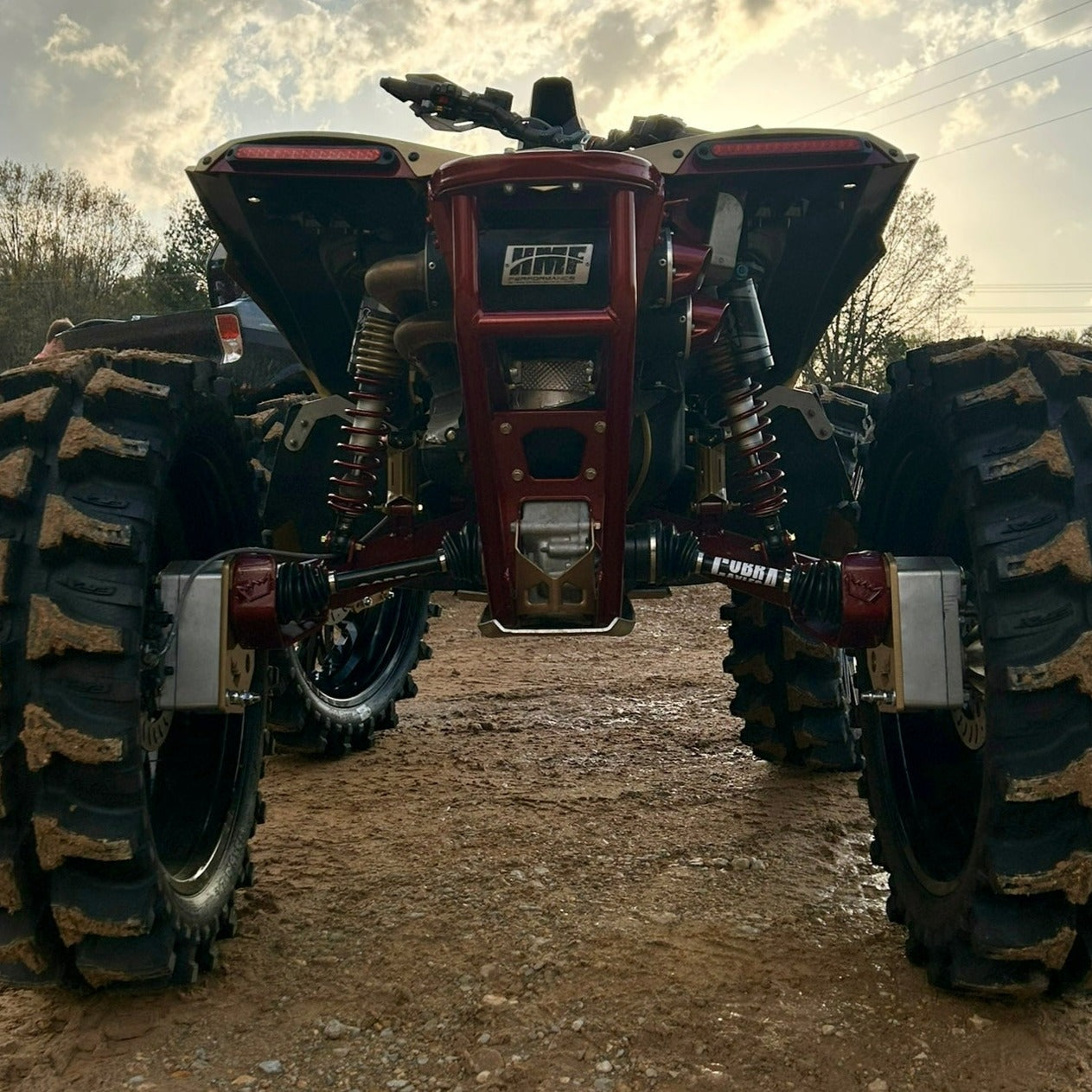 Choose between our bearing hubs or portal plate. Using our patent pending system, the arms can change between hubs and portal plates without having to remove the trailing arm from the machine. Axles can also be changed with the trailing arm and shock still mounted.