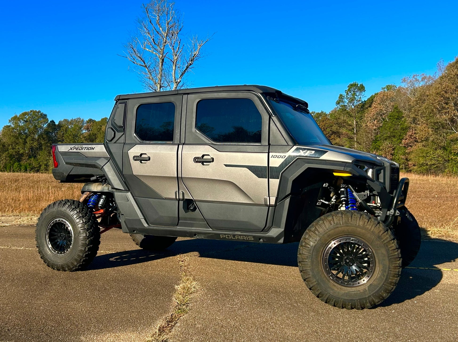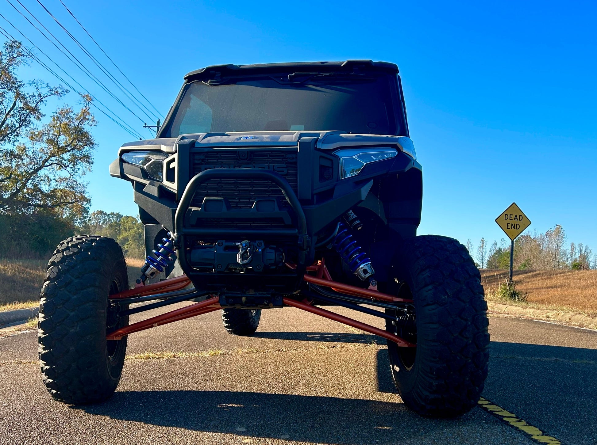 This is a true long travel suspension that maintains optimal shock geometry. These arms are constructed from 0.250" wall DOM and allows for a 35” tall tire. They allow for all OEM hardware, shocks, bushings and ball joints to be reused. Rear arms are adjustable using our patent pending design that allows for adjustments to be made WITHOUT having to remove the arms from the machine. OEM sway bars are compatible front and rear. This kit makes the machine 76” wide depending on wheel offset (68" from brake rotor to brake rotor.)